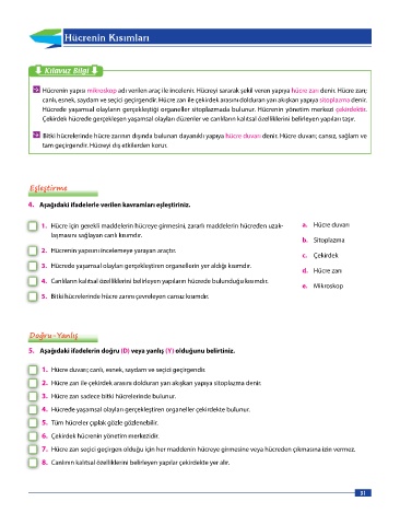 Page 31 - 7 sınıf Dorya Fen Bilimleri Sınıf İçi Uygulama Klavuzu_edited