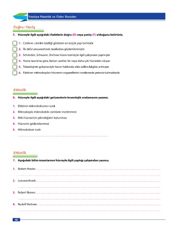 Page 48 - 7 sınıf Dorya Fen Bilimleri Sınıf İçi Uygulama Klavuzu_edited
