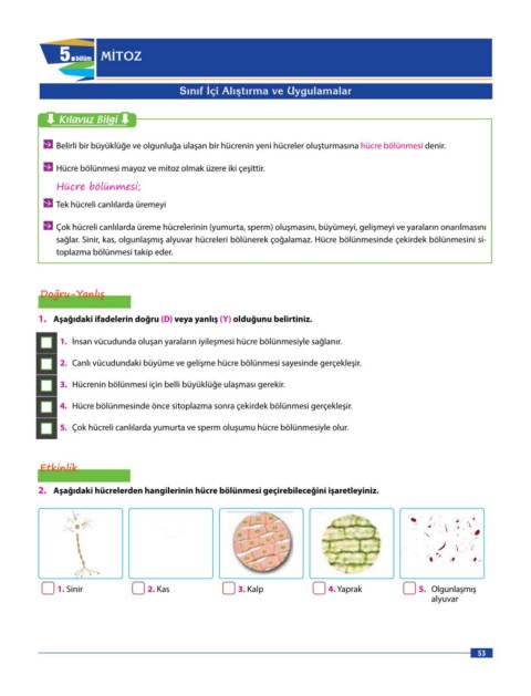 2. Canlı vücudundaki büyüme ve gelişme hücre bölünmesi sayesinde gerçekleşir.