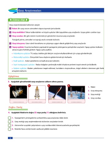 3. Aşağıdaki görsellerdeki uzay araçlarının adlarını altına yazınız.