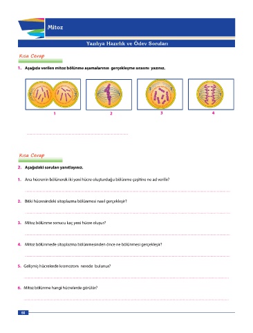 1. Aşağıda verilen mitoz bölünme aşamalarının gerçekleşme sırasını yazınız.