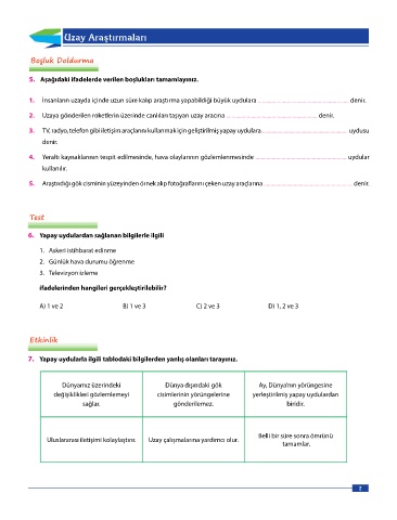 4. Yeraltı kaynaklarının tespit edilmesinde, hava olaylarının gözlemlenmesinde .................................................................. uydular