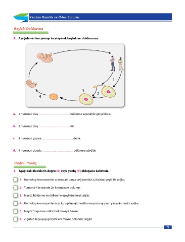 d. 4 numaralı olayda ................................................ bölünme görülür.
