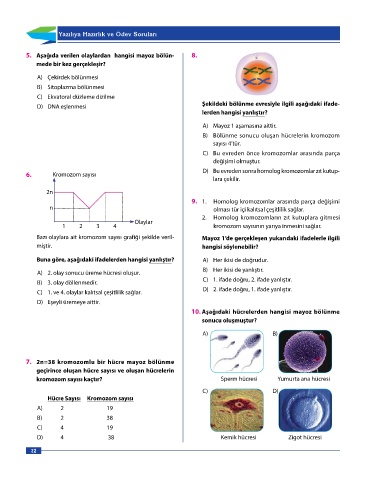 5. Aşağıda verilen olaylardan hangisi mayoz bölün- 8.
