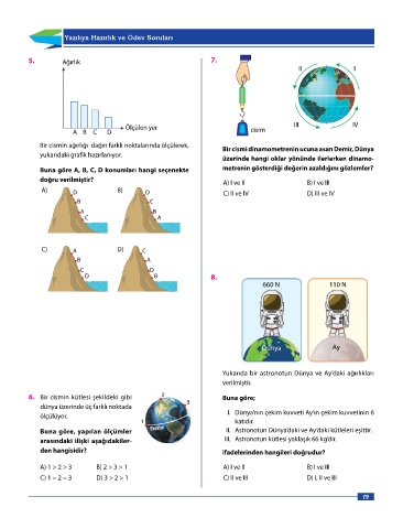 arasındaki ilişki aşağıdakiler- III. Astronotun kütlesi yaklaşık 66 kg’dir.