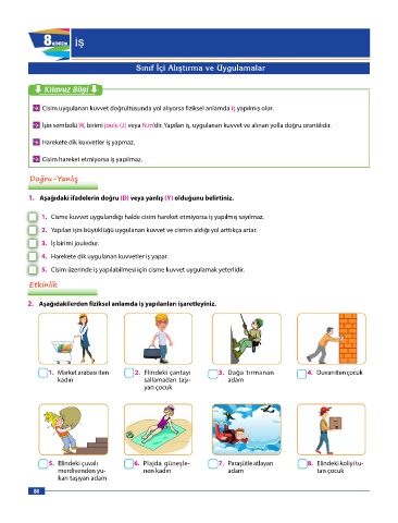 5. Cisim üzerinde iş yapılabilmesi için cisme kuvvet uygulamak yeterlidir.