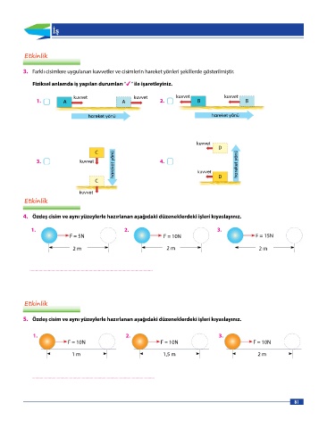 5. Özdeş cisim ve aynı yüzeylerle hazırlanan aşağıdaki düzeneklerdeki işleri kıyaslayınız.