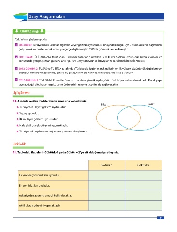 11. Tablodaki ifadelerin Göktürk-1 ya da Göktürk-2’ye ait olduğunu işaretleyiniz.