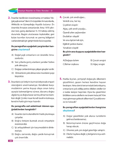 2. İnsanlar tarafından bozulmamış ormanlara “do- 4. Çocuk, çok sevdi ağacı...