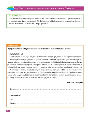 bitmesi arasındaki sürece zaman denir. Olaylar bu zaman dilimi içerisinde gerçekleşir. Bazı öykülerde