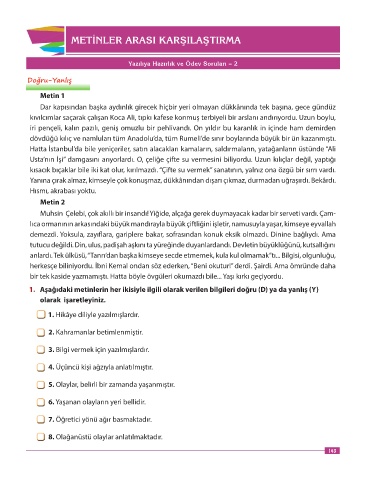 1. Aşağıdaki metinlerin her ikisiyle ilgili olarak verilen bilgileri doğru (D) ya da yanlış (Y)