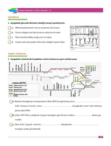 3. Aşağıdaki cümlelerde boşlukları metro haritasına göre doldurunuz.