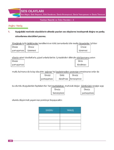 1. Aşağıdaki metinde sözcüklerin altında yazılan ses olaylarını inceleyerek doğru ve yanlış