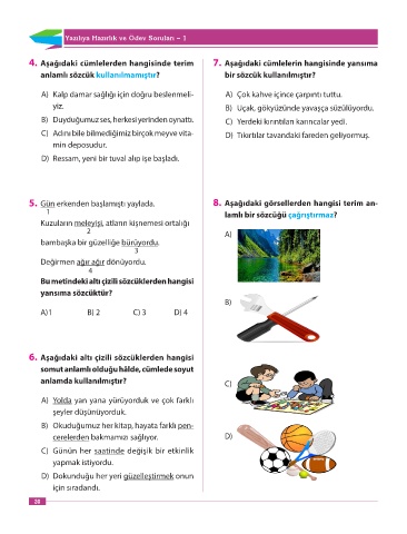 4. Aşağıdaki cümlelerden hangisinde terim 7. Aşağıdaki cümlelerin hangisinde yansıma