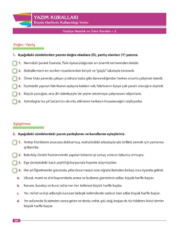 1. Aşağıdaki cümlelerden yazımı doğru olanlara (D), yanlış olanları (Y) yazınız.