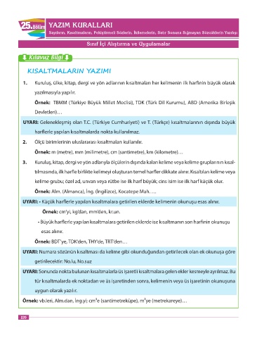 UYARI: Gelenekleşmiş olan T.C. (Türkiye Cumhuriyeti) ve T. (Türkçe) kısaltmalarının dışında büyük