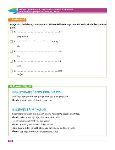 Page 222 - 5.Sınıf Dorya Türkçe Sınıf İçi Uygulama Klavuzu_edited_edited
