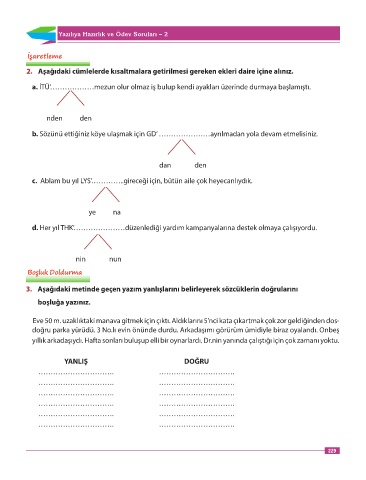 2. Aşağıdaki cümlelerde kısaltmalara getirilmesi gereken ekleri daire içine alınız.