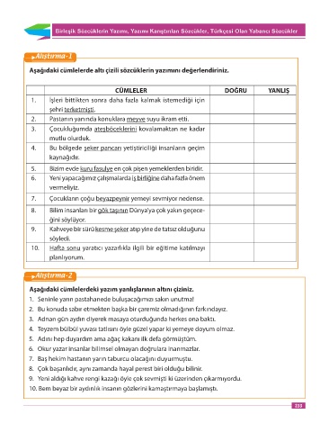 Aşağıdaki cümlelerde altı çizili sözcüklerin yazımını değerlendiriniz.