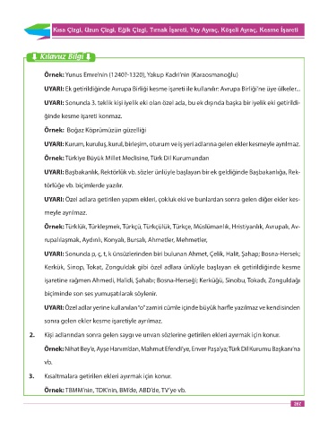 UYARI: Özel adlara getirilen yapım ekleri, çokluk eki ve bunlardan sonra gelen diğer ekler kes-