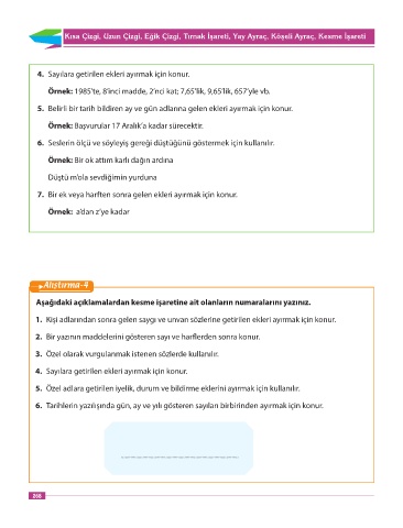4. Sayılara getirilen ekleri ayırmak için konur.