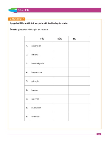 Örnek: göreceksin / kök: gör- ek: -eceksin