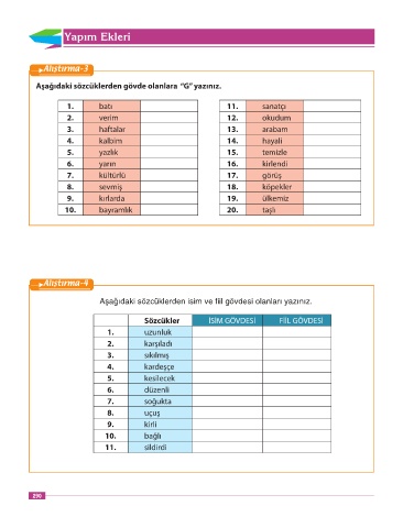 Aşağıdaki sözcüklerden isim ve fiil gövdesi olanları yazınız.