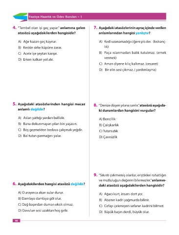 5. Aşağıdaki atasözlerinden hangisi mecaz 8. “Denize düşen yılana sarılır.” atasözü aşağıda-