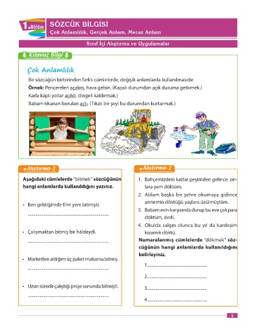 Bir sözcüğün birbirinden farklı cümlelerde, değişik anlamlarda kullanılmasıdır.