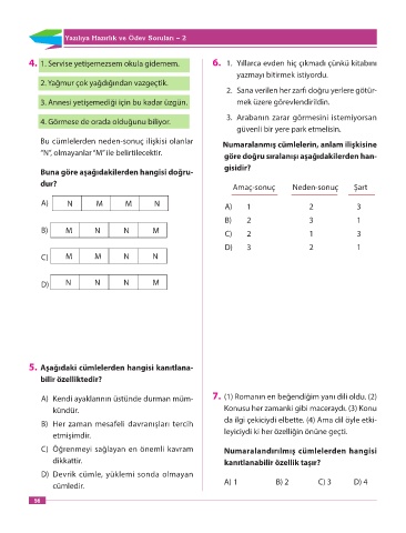 4. 1. Servise yetişemezsem okula gidemem. 6. 1. Yıllarca evden hiç çıkmadı çünkü kitabını