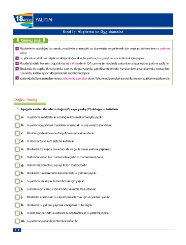 Page 110 - 6 sınıf Dorya Fen Bilimleri Sınıf İçi Uygulama Klavuzu_edited