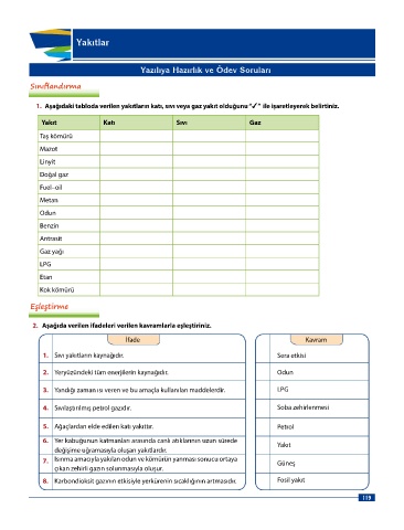 Page 119 - 6 sınıf Dorya Fen Bilimleri Sınıf İçi Uygulama Klavuzu_edited