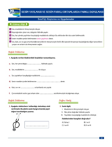 Page 121 - 6 sınıf Dorya Fen Bilimleri Sınıf İçi Uygulama Klavuzu_edited