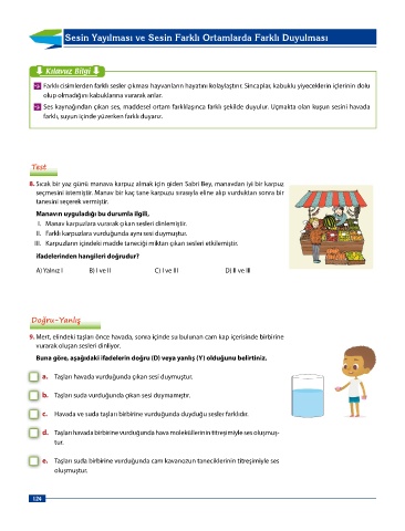 Page 124 - 6 sınıf Dorya Fen Bilimleri Sınıf İçi Uygulama Klavuzu_edited