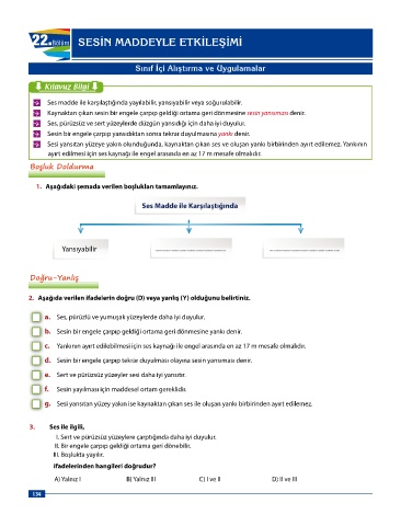b. Sesin bir engele çarpıp geldiği ortama geri dönmesine yankı denir.