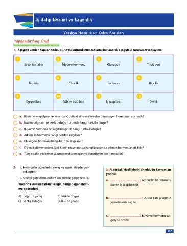 h. Bağımsızlık arayışı ve zihinsel değişim ergenlik döneminde görülen fiziksel değişimlerdendir. 2. I. Hormonlar görevlerini yavaş ve uzun sürede ger- 3. Aşağıdaki özelliklerin ait olduğu kavramları