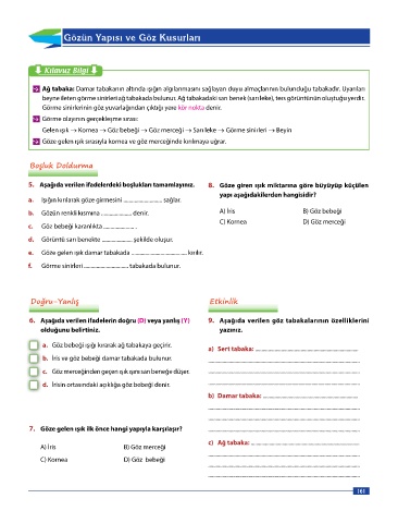 Doğru-Yanlış a. Işığın kırılarak göze girmesini ............................ sağlar.