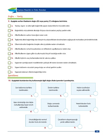 .......................................................................................................................................................................................................................................... 10. Aşağıdaki kutulardan ilaç kullanımıyla ilgili doğru ifade içerenleri işaretleyiniz.