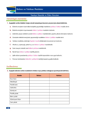 a. Elektrik enerjisinin üzerinden kolaylıkla geçebildiği maddelere yalıtkan / iletken madde denir.