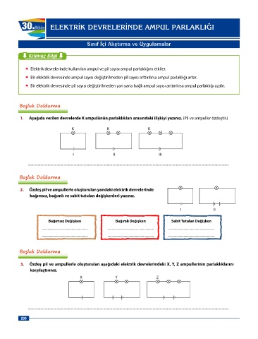Page 200 - 6 sınıf Dorya Fen Bilimleri Sınıf İçi Uygulama Klavuzu_edited