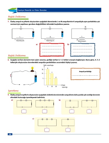 Page 206 - 6 sınıf Dorya Fen Bilimleri Sınıf İçi Uygulama Klavuzu_edited
