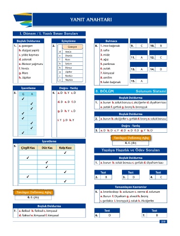 Boşluk Doldurma 1. a. gezegen 2. Gezegen 8. 1. ince bağırsak 9. C 10. B