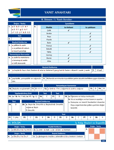 6. a. Y b. D c. D d. Y e. Y f. D 7. A 8. D 9. a. sinir b. merkezi c. cevap d. tepki Doğru - Yanlış İşaretleme
