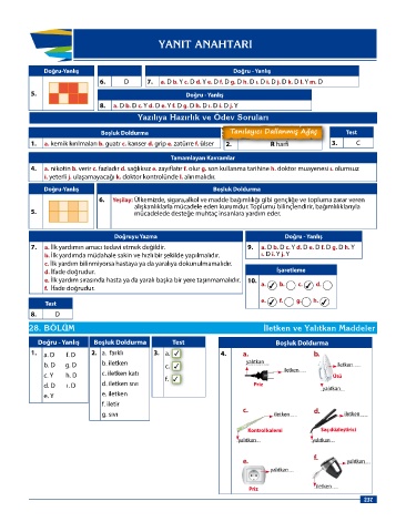 Boşluk Doldurma 7. a. İlk yardımın amacı tedavi etmek değildir. 9. a. D b. D c. Y d. D e. D f. D g. D h. Y