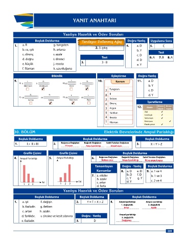 1. a. direnç g. değişir 2. B 3. a. D h. D 4. a. → 1 1. I > II > III 2. Bağımsız Değişken Bağımlı Değişken Sabit Tutulan Değişken 3. X = Y > Z