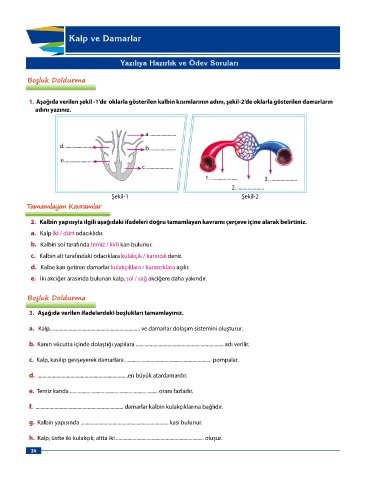 1. Aşağıda verilen şekil -1’de oklarla gösterilen kalbin kısımlarının adını, şekil-2’de oklarla gösterilen damarların