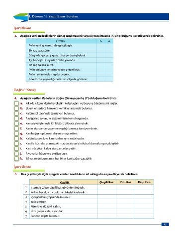 3. Aşağıda verilen özelliklerin Güneş tutulması (G) veya Ay tutulmasına (A) ait olduğunu işaretleyerek belirtiniz.