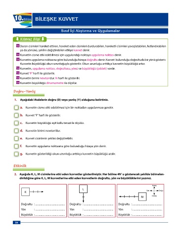 Page 54 - 6 sınıf Dorya Fen Bilimleri Sınıf İçi Uygulama Klavuzu_edited
