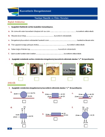 a. Bir cisme etki eden kuvvetlerin bileşkesi sıfır ise cisim ...................................................................... kuvvetlerin etkisindedir.