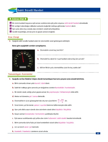 a. Sürati hesaplamak için yol ve zamanın bilinmesi yeterlidir. Tamamlayan Kavramlar